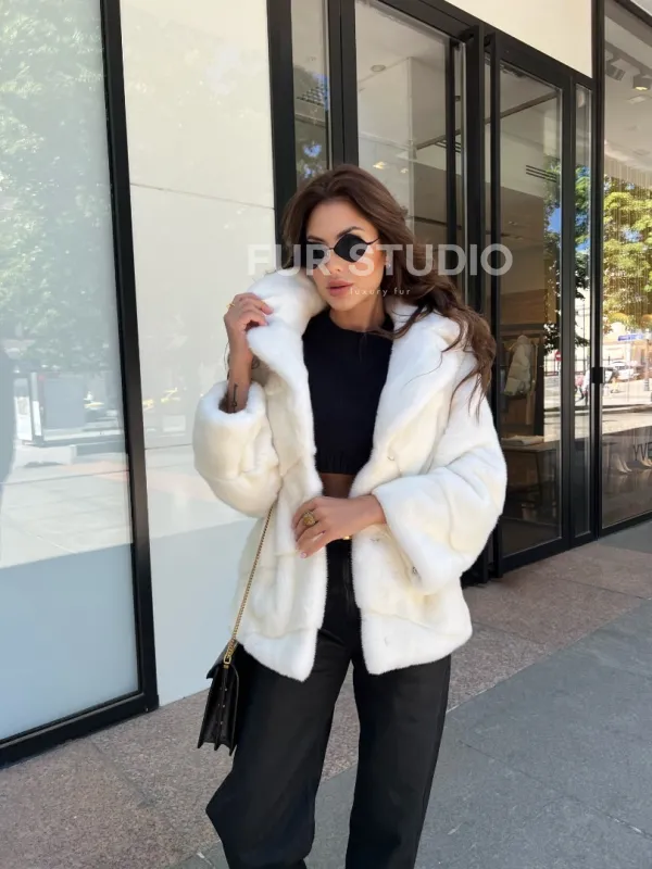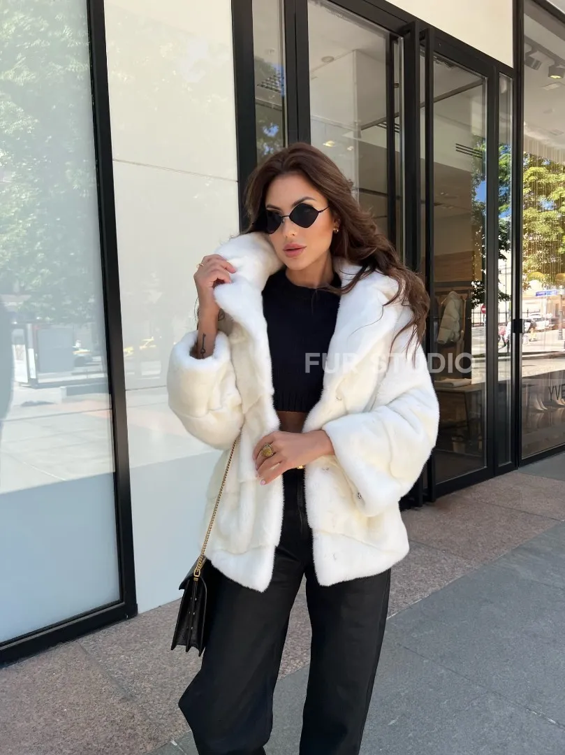 Модель прекрасно сочетается с любым гардеробом: от базового до вечерних туалетов. Прямой крой позволит скрыть недостатки фигуры. Добавьте статусную сумочку в образ, и вы будете выглядеть бесподобно. Приобрести норковое изделие – выгодное вложение в себя, качество верхней одежды будет радовать долгие годы. Купить белую короткую норковую шубу могут женщины, которые любят выглядеть дорого, но со вкусом.