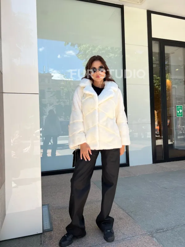 Белая короткая норковая шуба 100336