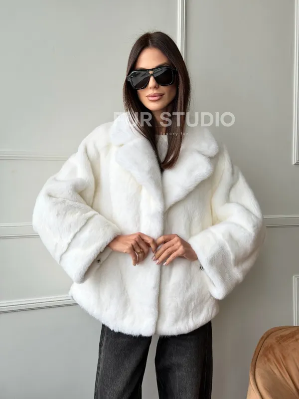 Мех данной шубы аукционная норка, цвет белый. Предлагается в размерах от 42 до 52. Длина модели 60-65 см, что выгодно подчеркивает фигуру девушек. Эта модель идеально подойдет для девушек и женщин, предпочитающих роскошные натуральные меха.