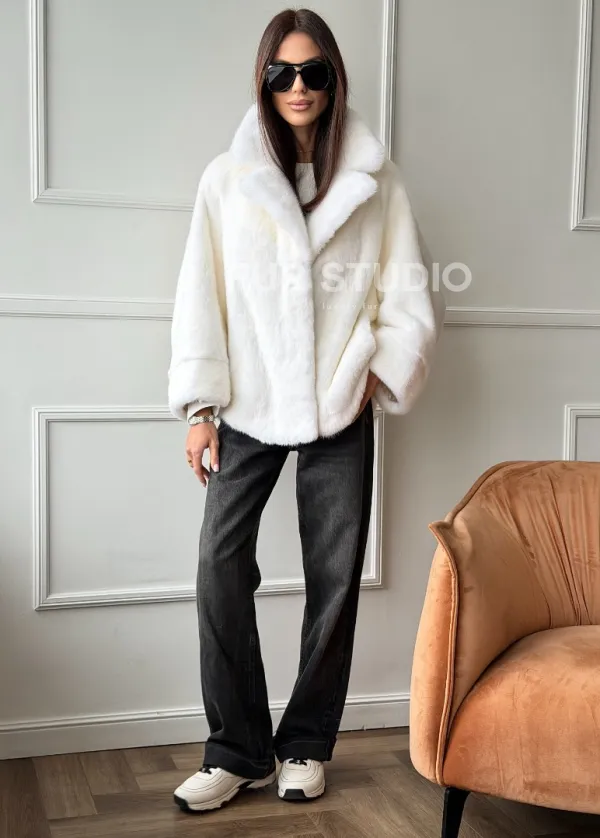 Белая шуба из скандинавской норки 102746