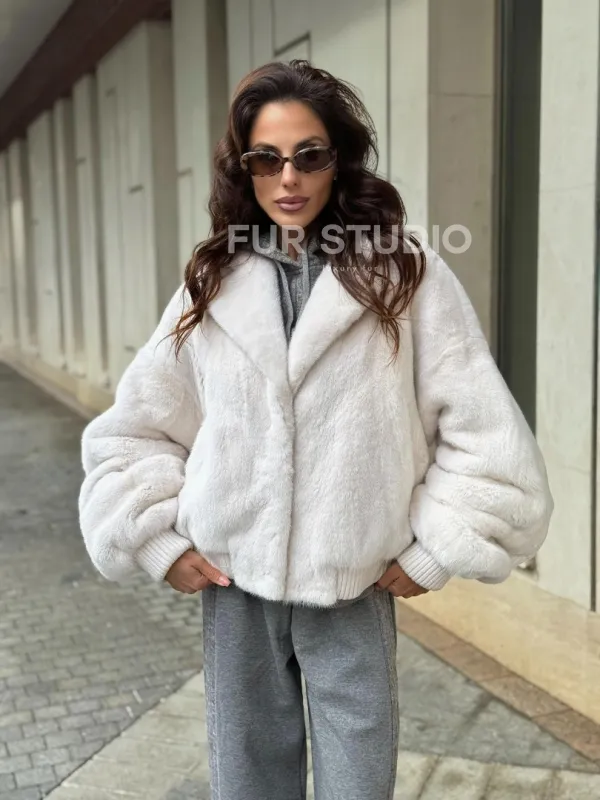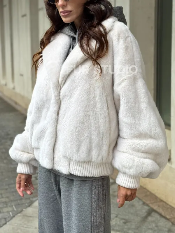 Белый норковый бомбер на резинке 102288