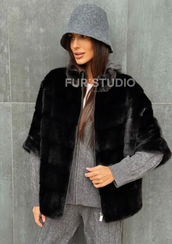 Мех данной шубы аукционная норка , цвет черный. Предлагается в размерах от 40 до 48 (oversize). Длина модели 60-65 см, что выгодно подчеркивает фигуру девушек. Эта модель идеально подойдет для девушек и женщин, предпочитающих роскошные натуральные меха.