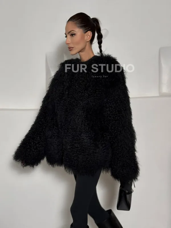 Черная шуба из меха ламы воротник шанель доступна для покупки в нашем шоуруме Furs Studio в . У нас так же есть доставка во все города России. Добавьте немного роскоши в свой гардероб с этой шубой, которая будет служить вам многие годы.