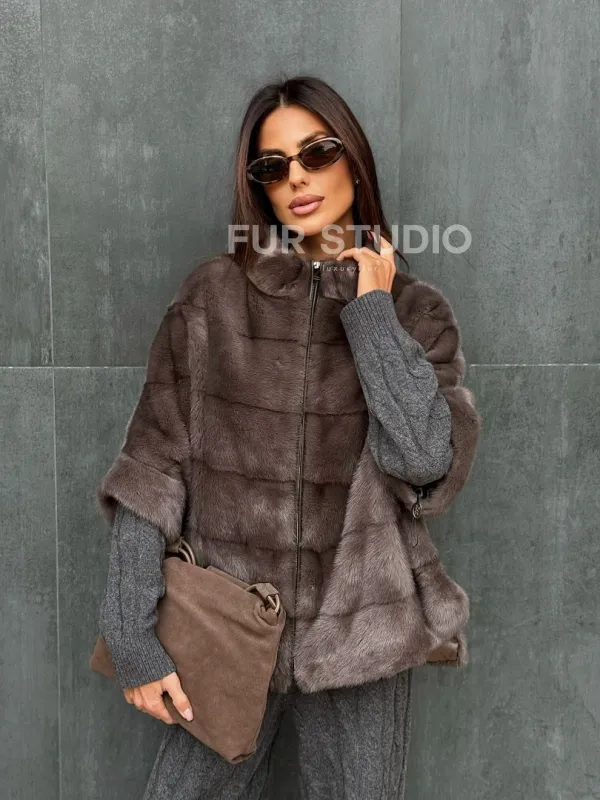 Мех данной шубы аукционная норка , цвет серый. Предлагается в размерах от 40 до 48 (oversize). Длина модели 60-65 см, что выгодно подчеркивает фигуру девушек. Эта модель идеально подойдет для девушек и женщин, предпочитающих роскошные натуральные меха.
