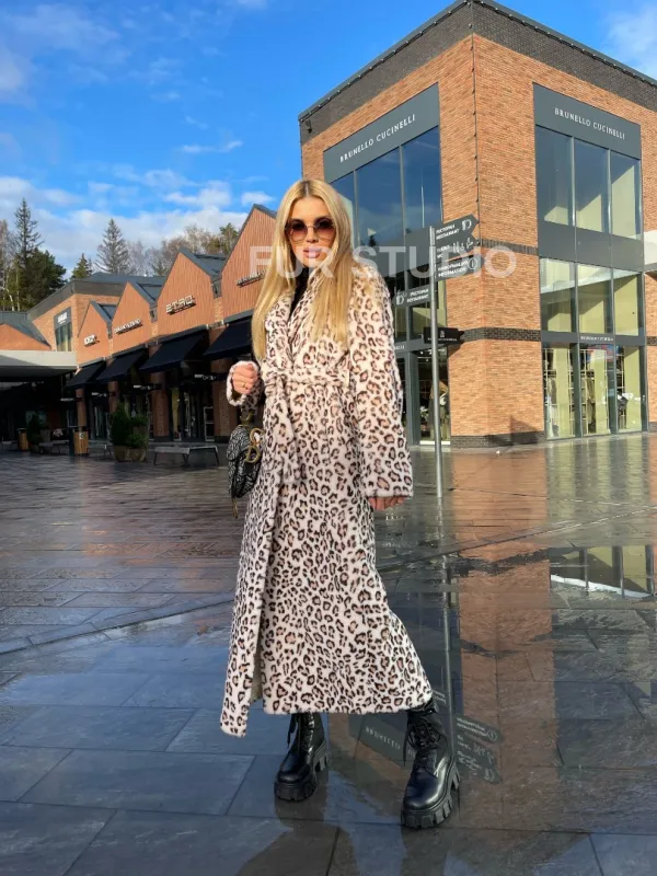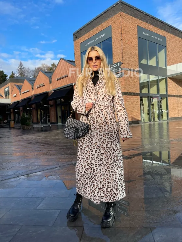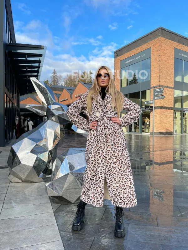 Леопардовая шуба из натуральной шерсти 100199