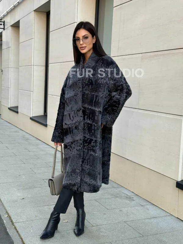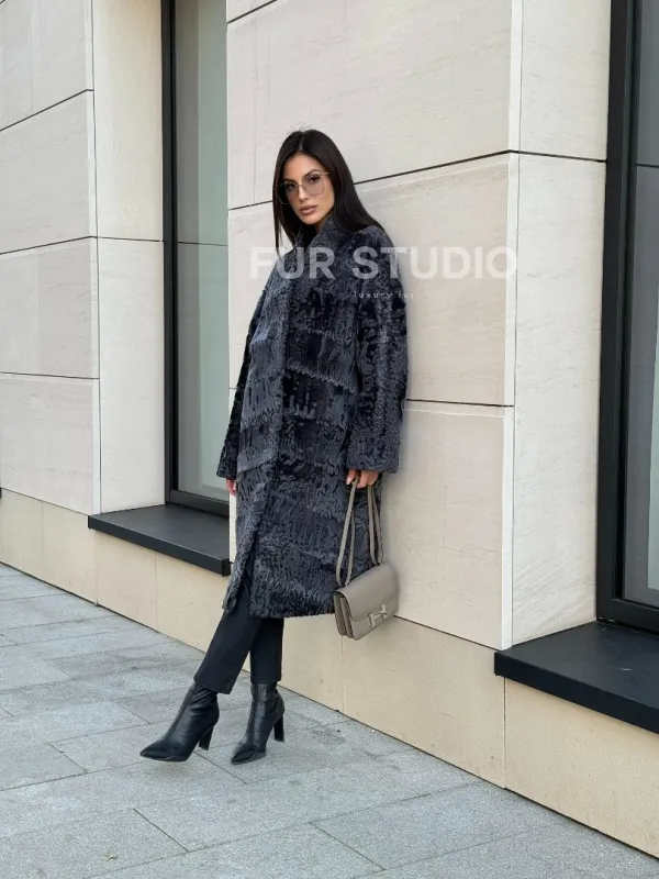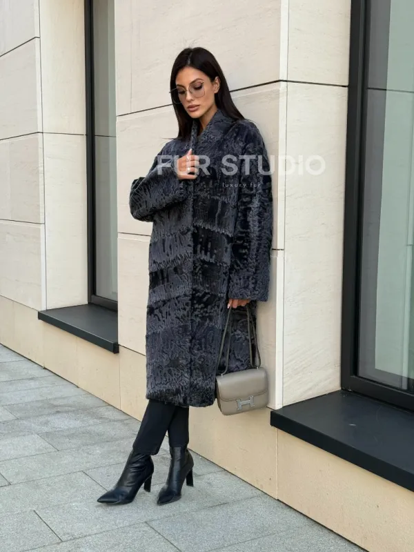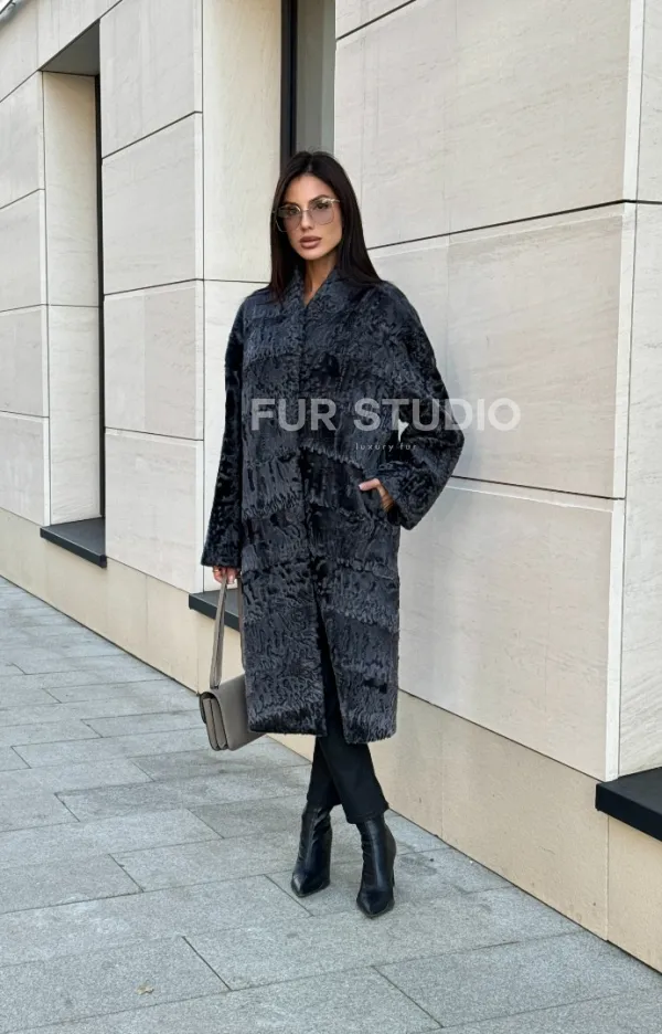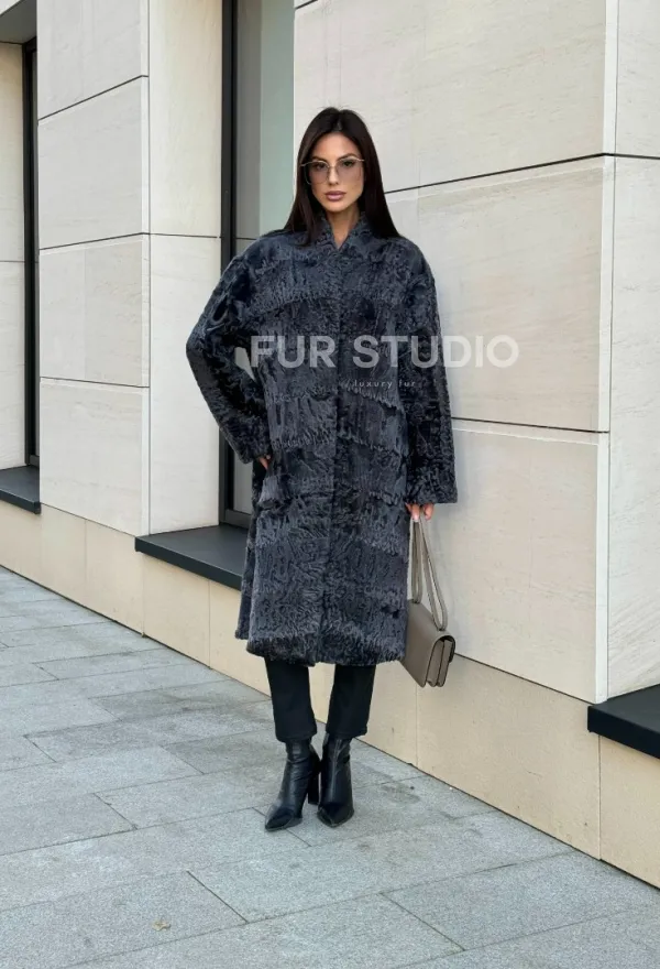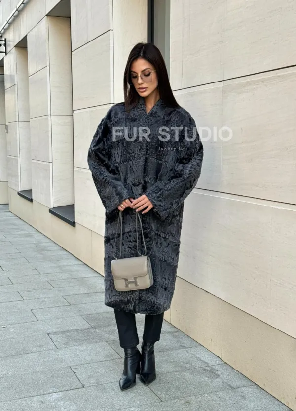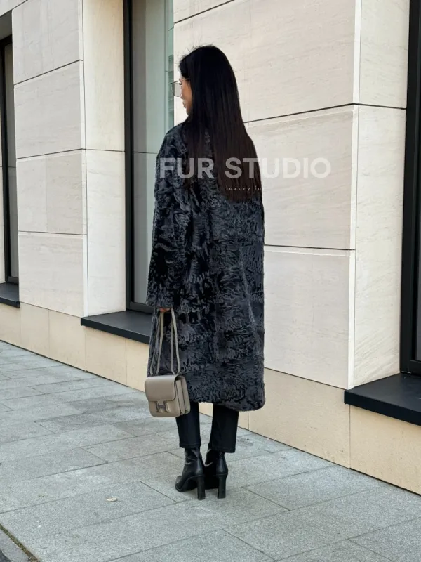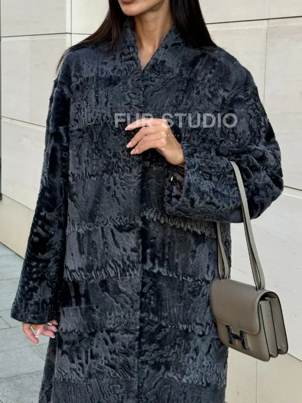 Меховое пальто из каракуля Graphite V-образный воротник 101117