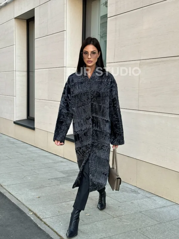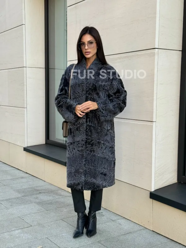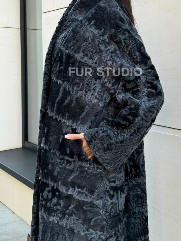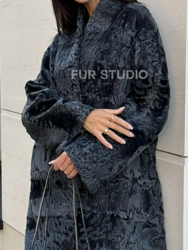 Меховое пальто из каракуля Graphite V-образный воротник доступна для покупки в нашем шоуруме Furs Studio в . У нас так же есть доставка во все города России. Добавьте немного роскоши в свой гардероб с этой шубой, которая будет служить вам многие годы.