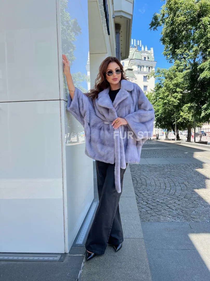 Норковое пончо из меха голубой норки 100115