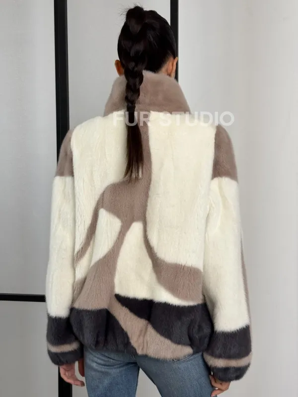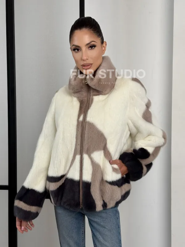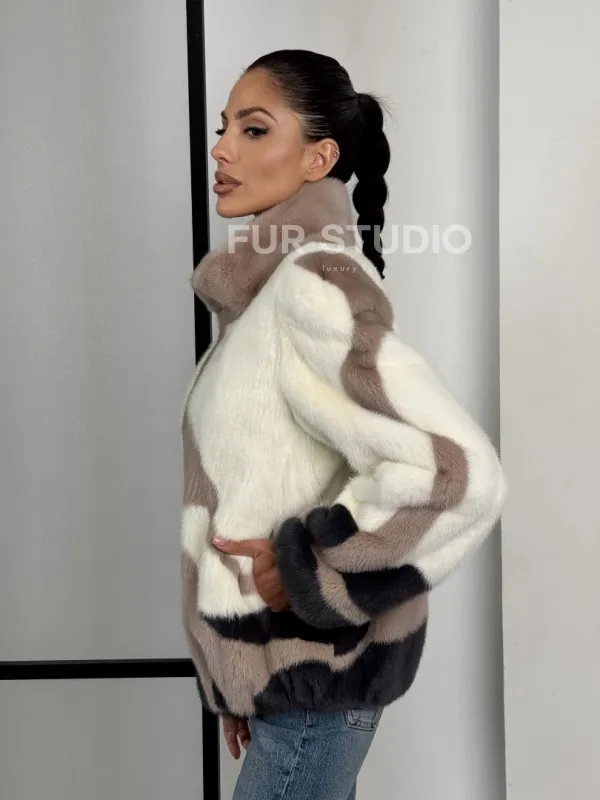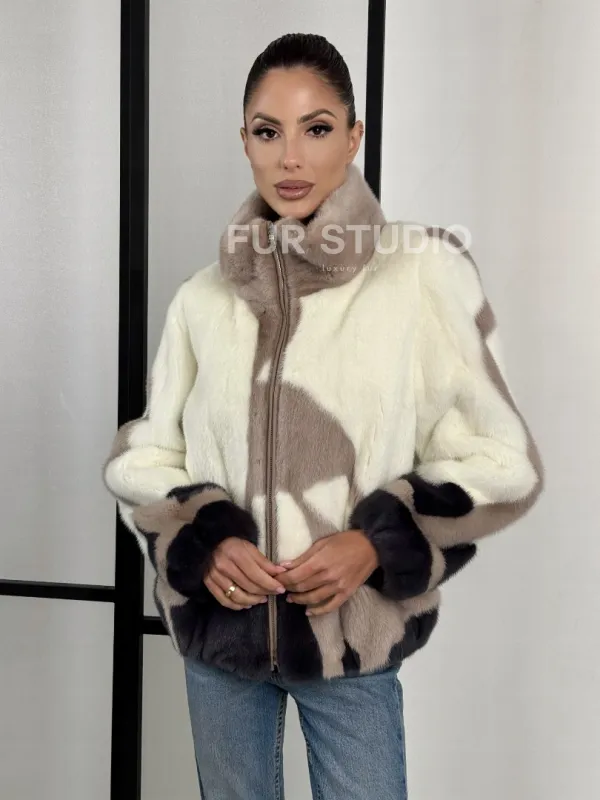 Норковый бомбер на молнии стойка воротник 101373