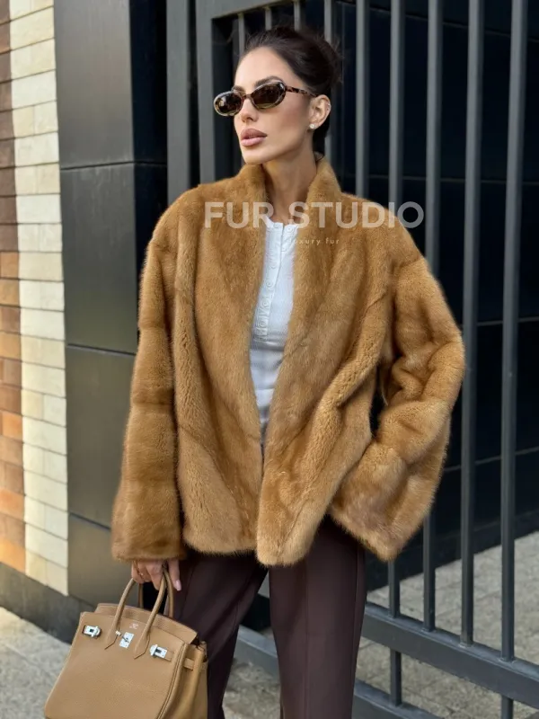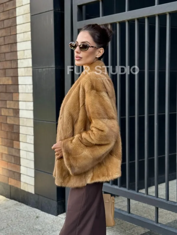 Норковый жакет Gold воротник V-образный 102229