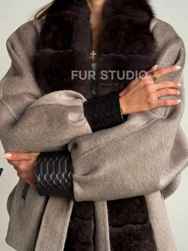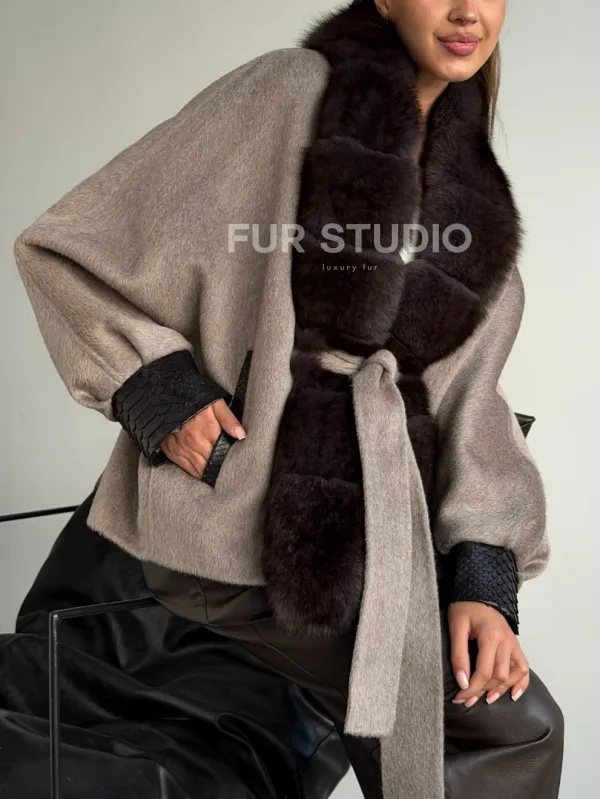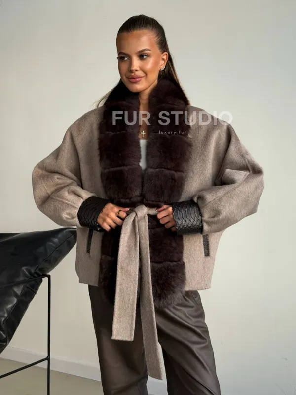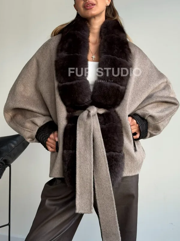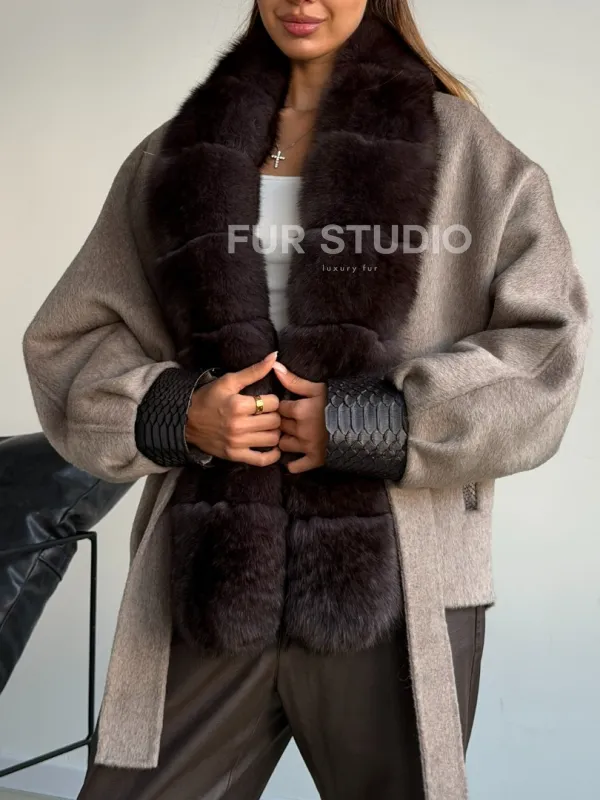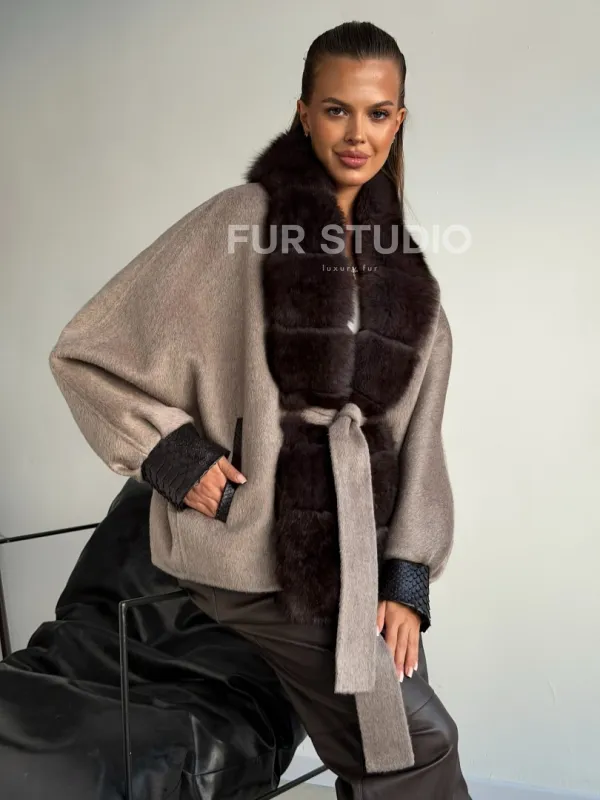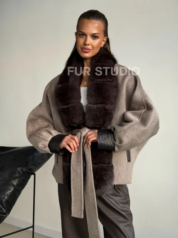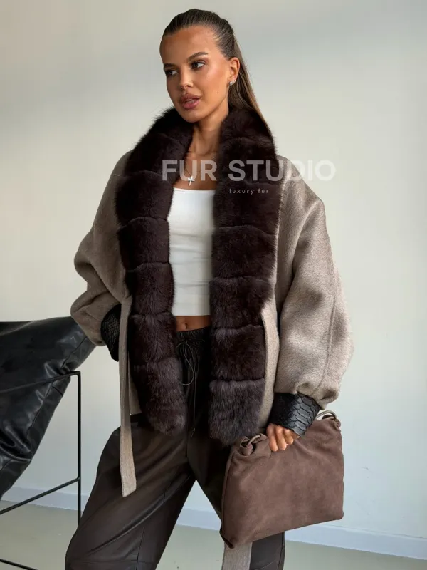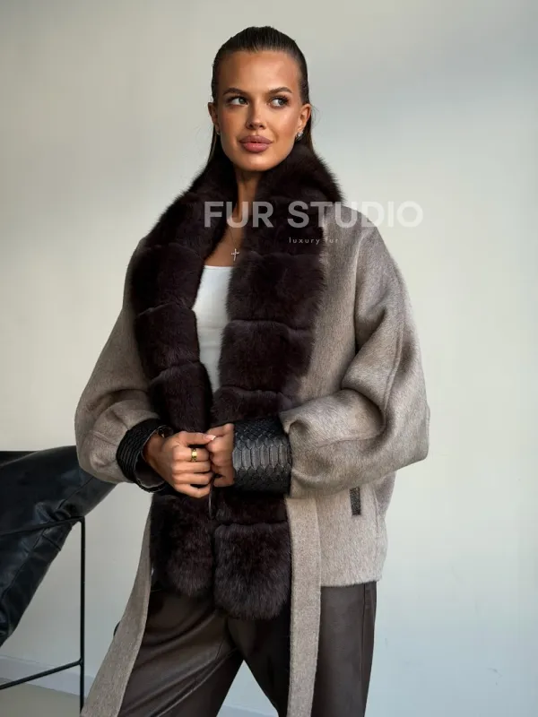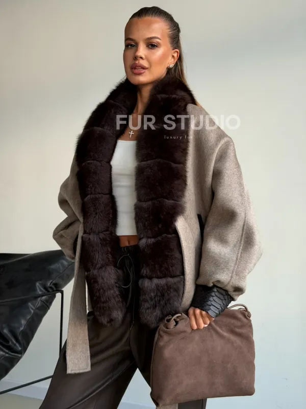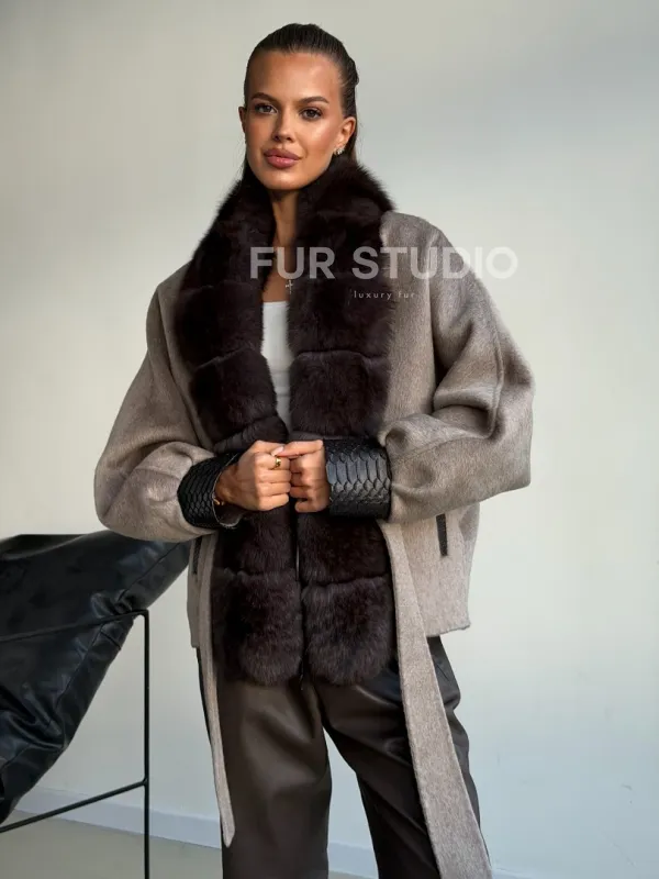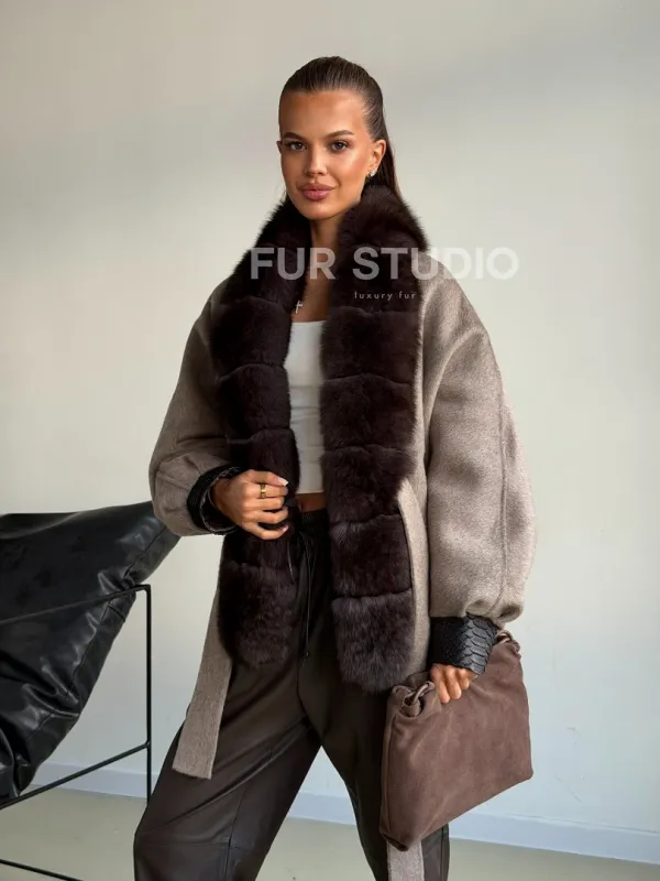 Пальто с мехом финского песца 102588