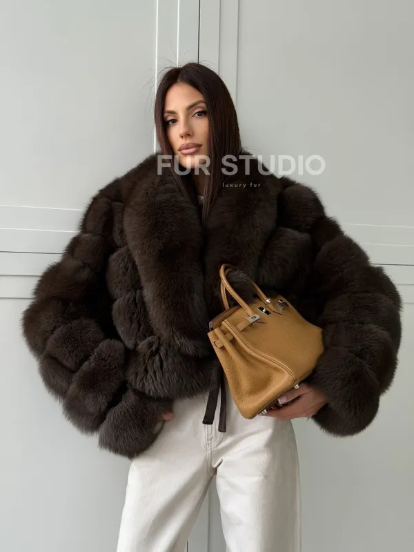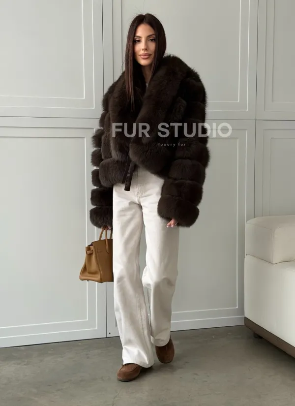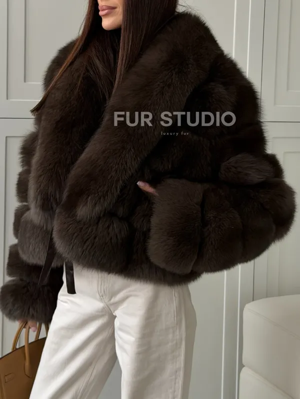 Мех данной шубы финский песец, цвет коричневый. Предлагается в размерах от 42 до 48. Длина модели 50-55 см, что выгодно подчеркивает фигуру девушек. Эта модель идеально подойдет для девушек и женщин, предпочитающих роскошные натуральные меха.