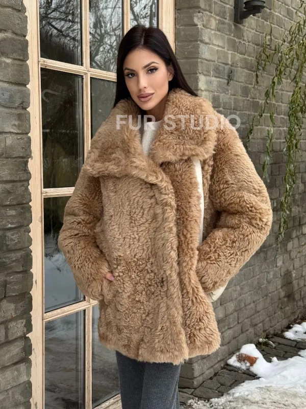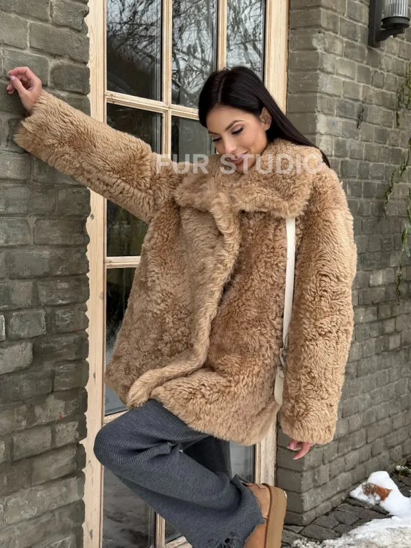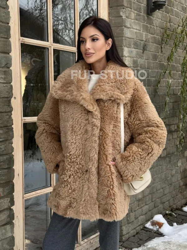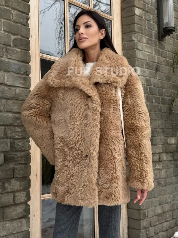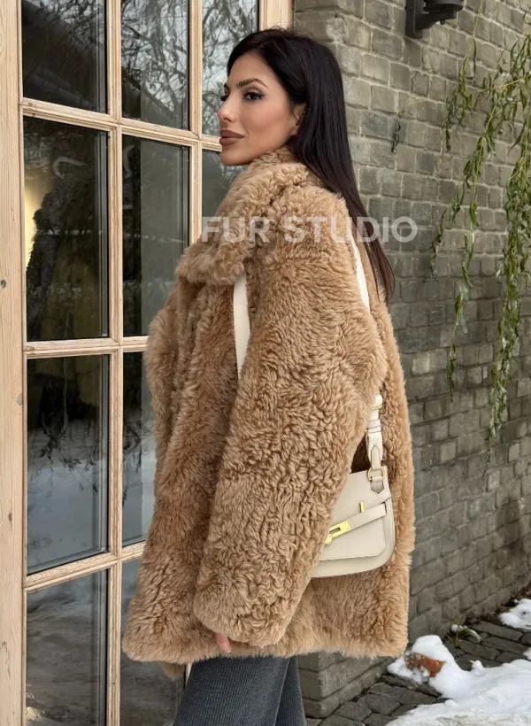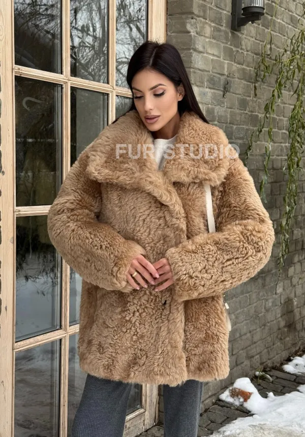 Шуба - дубленка из овчины в бежевом цвете 101433