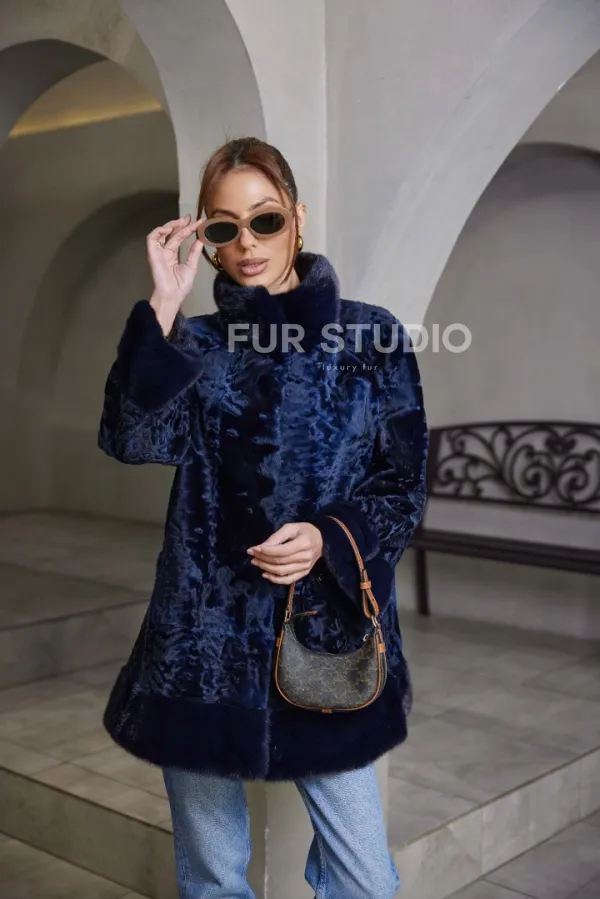 Шуба из каракульчи стойка воротник - цвет синий доступна для покупки в нашем шоуруме Furs Studio в . У нас так же есть доставка во все города России. Добавьте немного роскоши в свой гардероб с этой шубой, которая будет служить вам многие годы.