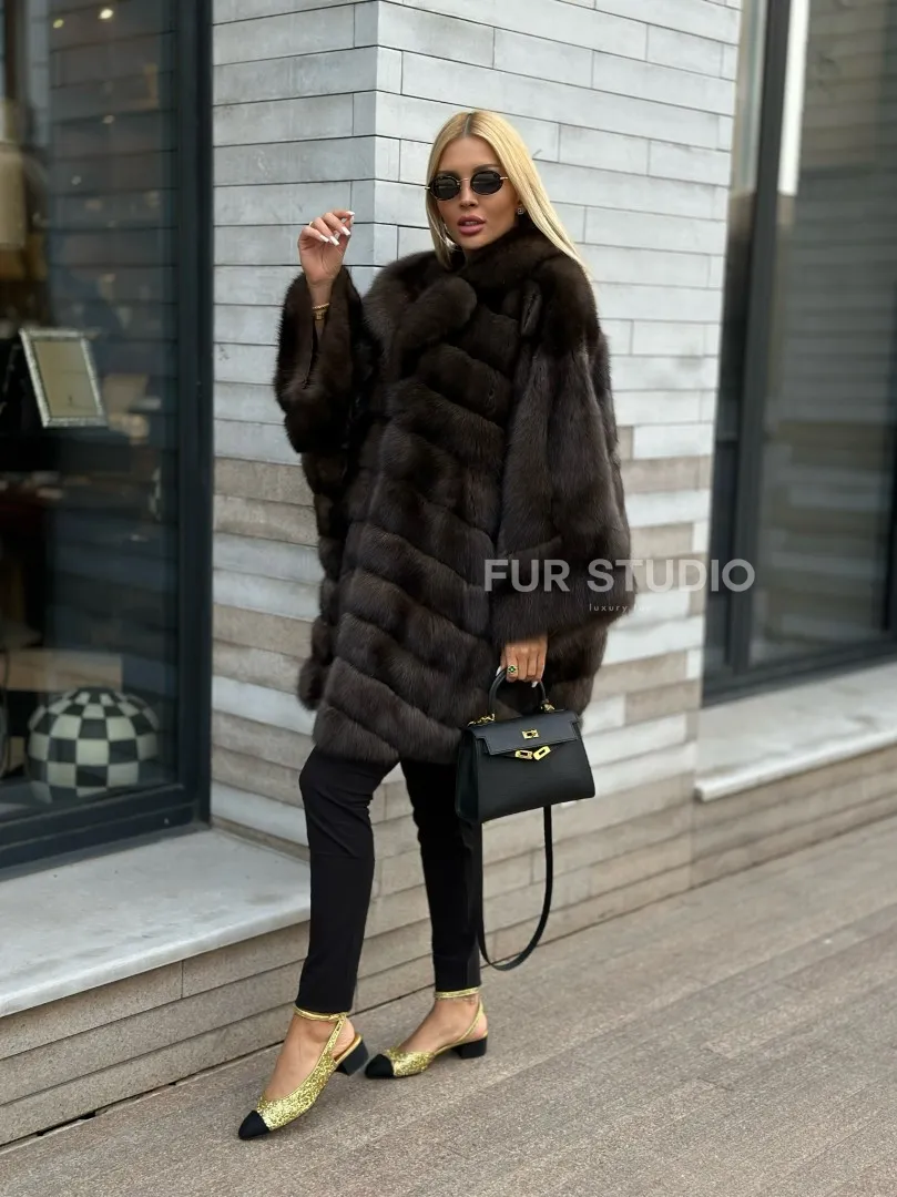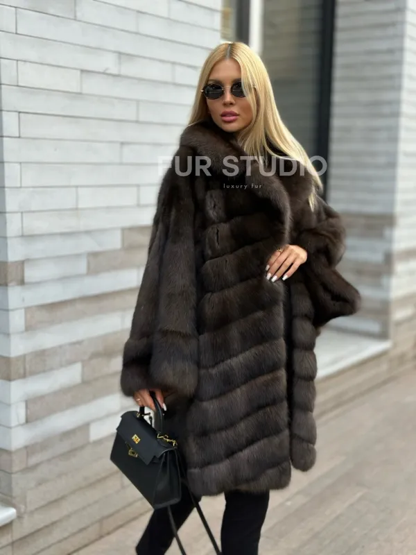 Шуба из натурального меха баргузинского соболя (седина 2) 100503