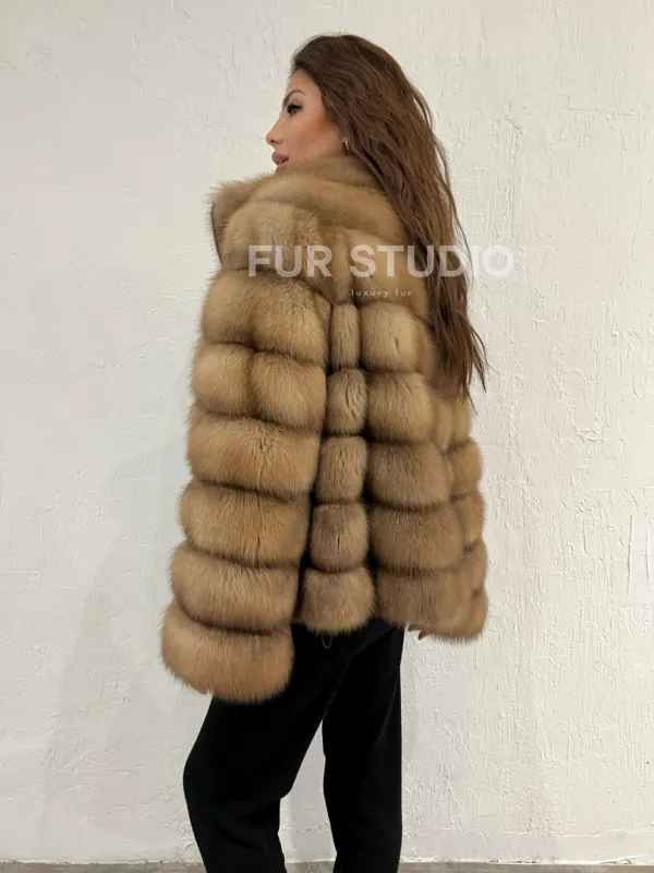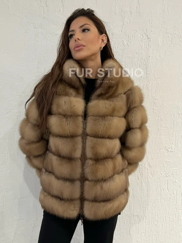 Мех данной шубы лесная куница, цвет натуральный. Предлагается в размерах от 42 до 44. Длина модели 55-60 см, что выгодно подчеркивает фигуру девушек. Эта модель идеально подойдет для девушек и женщин, предпочитающих роскошные натуральные меха.