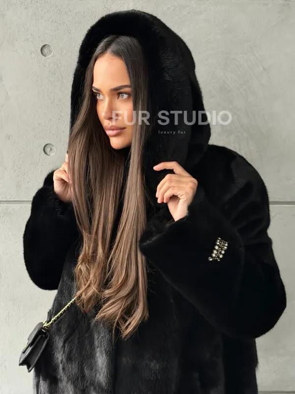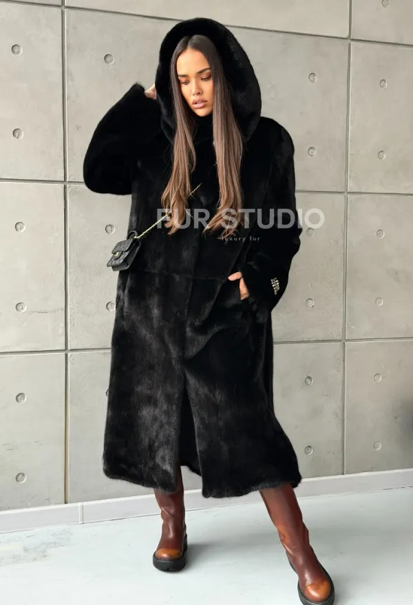 Шуба из норки Blackglama с капюшоном 100632