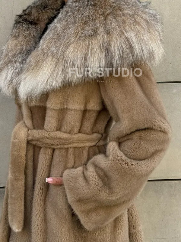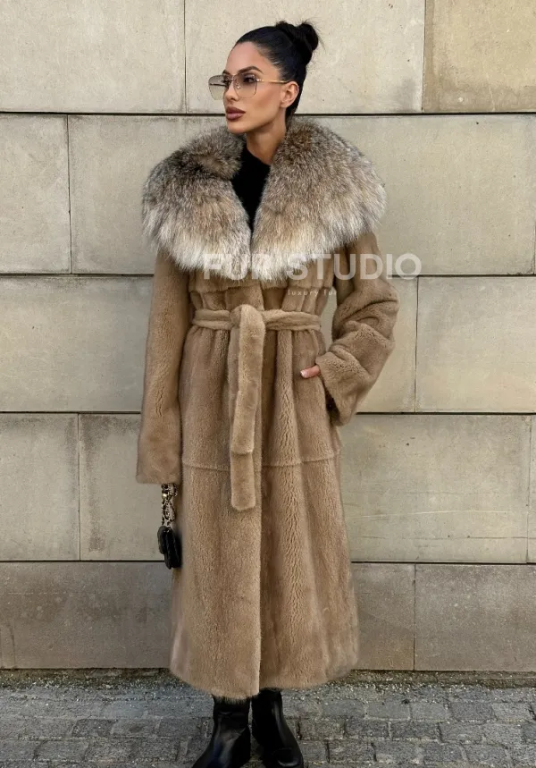 Шуба из норки Caramel с капюшоном из меха рыси доступна для покупки в нашем шоуруме Furs Studio в . У нас так же есть доставка во все города России. Добавьте немного роскоши в свой гардероб с этой шубой, которая будет служить вам многие годы.