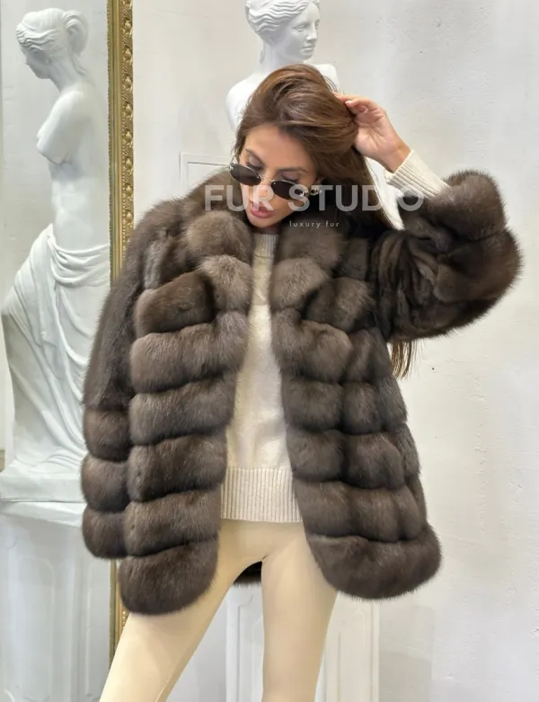 Стильный жакет из меха соболя доступна для покупки в нашем шоуруме Furs Studio в . У нас так же есть доставка во все города России. Добавьте немного роскоши в свой гардероб с этой шубой, которая будет служить вам многие годы.