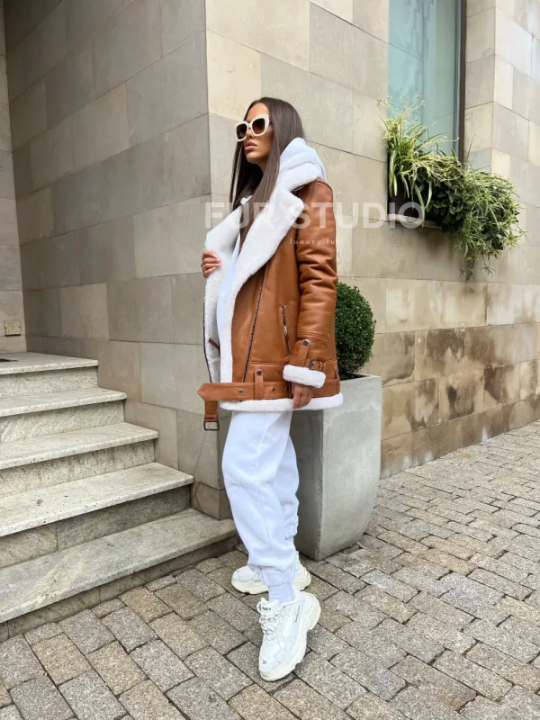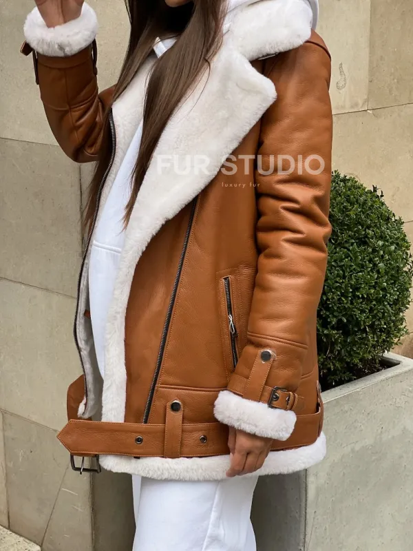 Женская дубленка авиатор в цвете виски 100202