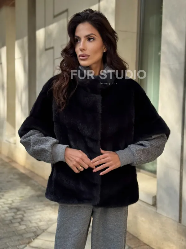 Женская меховая норковая куртка -темный графит 102280