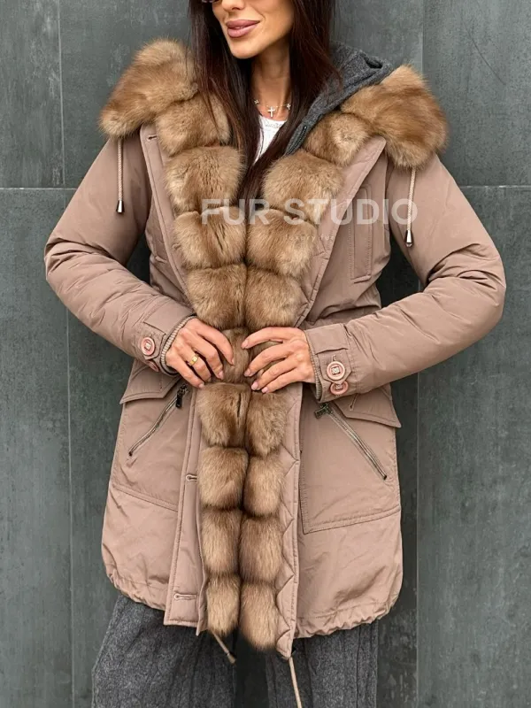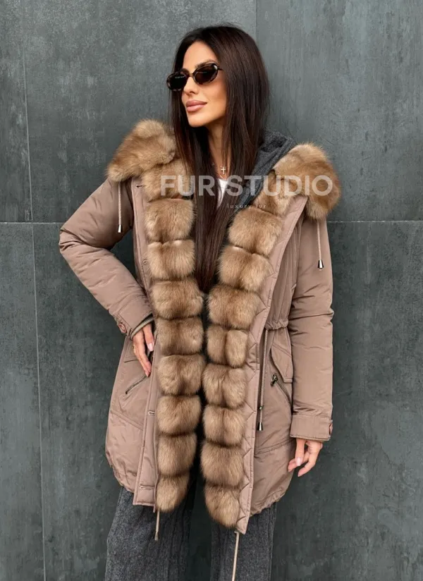 Женский пуховик с мехом куницы 102412